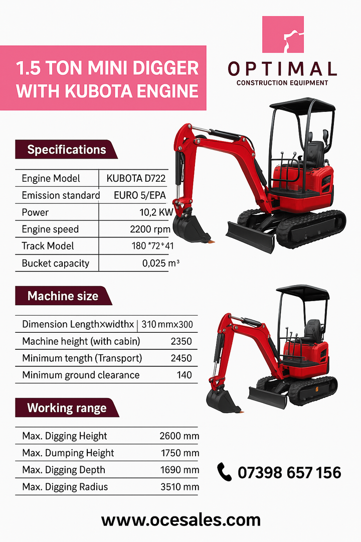 🚜 2026 LE1.5 Mini Digger – 1.5 Ton